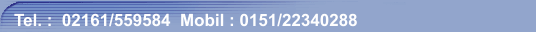 In der Zwischenzeit erreichen Sie uns wie immer telefonisch unter 02161/559584 und Mobil unter 0151-22340288. Natürlich freuen wir uns auch über eine E-Mail von Ihnen, die Sie an diese Adresse senden können: mwiba@t-online.de